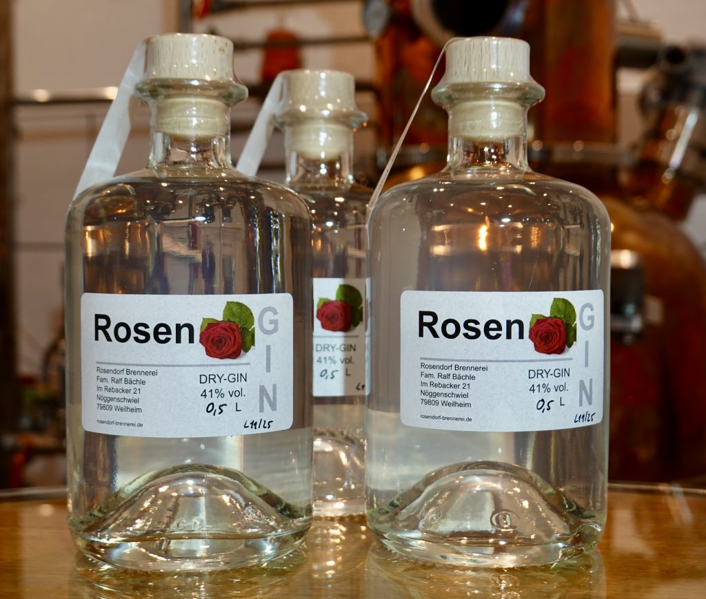 Unser erster Rosen-Gin destillierte Ralf Bächle im Sommer 2021, bereits im Mai 2022 zeichnete der Verband Badischer Klein- & Obstbrenner e. V. diesen mit der Bronzemedaille aus.
